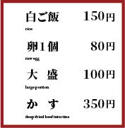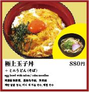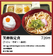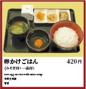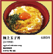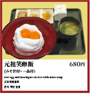 お米は笑卵専用に栽培された「笑卵特別大粒米」と自慢の食材。